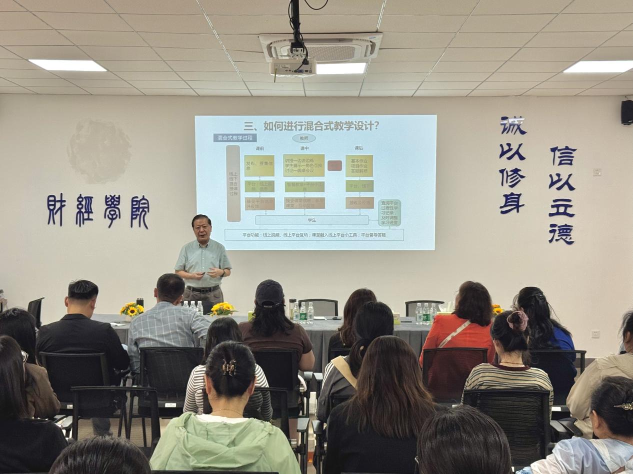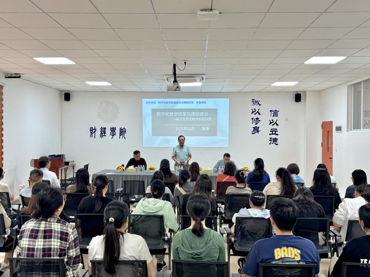 为积极响应数智时代教育变革需求,提升全院教师数字化教学能力,推动课程建设与教学改革深度融合,12月10日下午,财经学院院长张涛教授面向全院教师开展《数字化教学改革与课程建设——基于混合式教学实践探索》专题讲座。全院教师齐聚一堂,共同探讨数字化背景下高校教学的转型路径与实践策略。