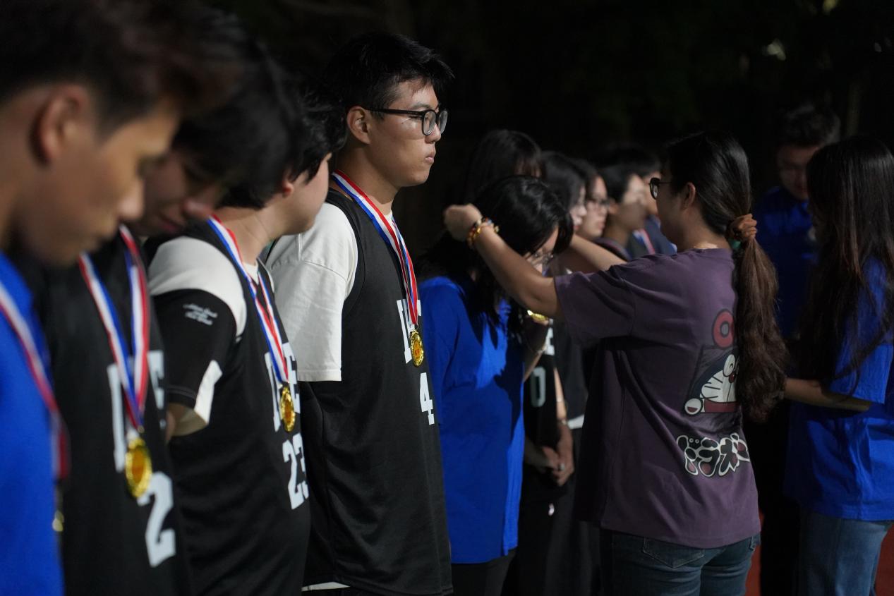 近日,财经学院2025级“新生杯”篮球赛圆满落幕。闭幕式当天,钟楼球场灯火璀璨,掌声与欢呼交织成青春的乐章。各参赛队伍齐聚赛场,共同见证荣耀时刻,为这场充满激情、汗水与团结的新生体育盛会,画上了圆满句点。