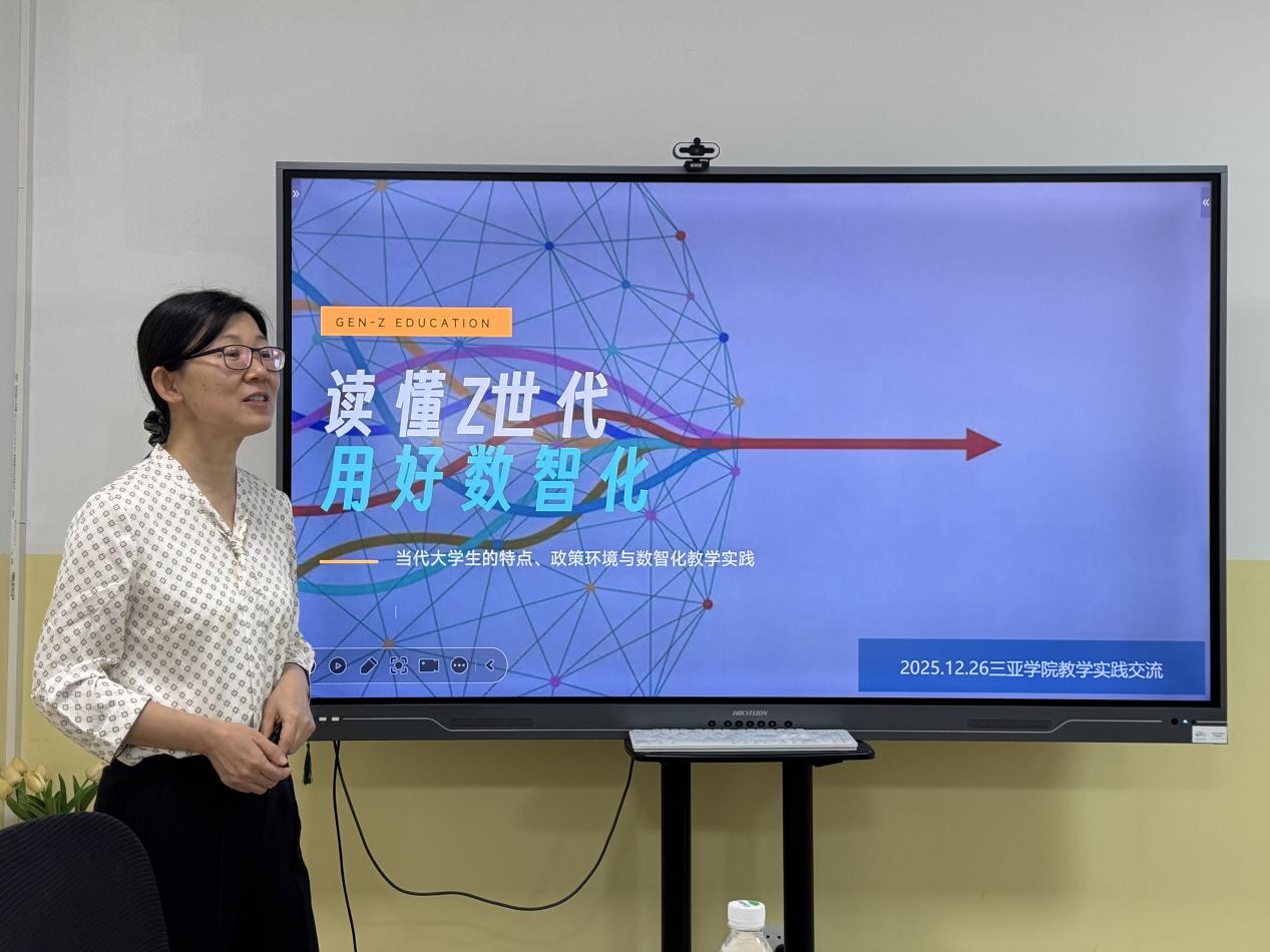 分享会上,田彩英教授围绕五大核心内容,系统阐述了混合式教学改革的内涵与实践路径,内容兼具理论高度与实践指导性。她首先解读了Z世代的定义与核心特征,深入剖析了当代大学生思维活跃、注重个性、善于互动、自主学习需求强烈、数字化适应能力突出等六大特质。结合教育数字化战略行动的时代背景,田彩英教授分析了当前高校教学面临的新机遇与新挑战,并就智慧教学实践探索展开详细讲解,为在场教师明确了改革方向。