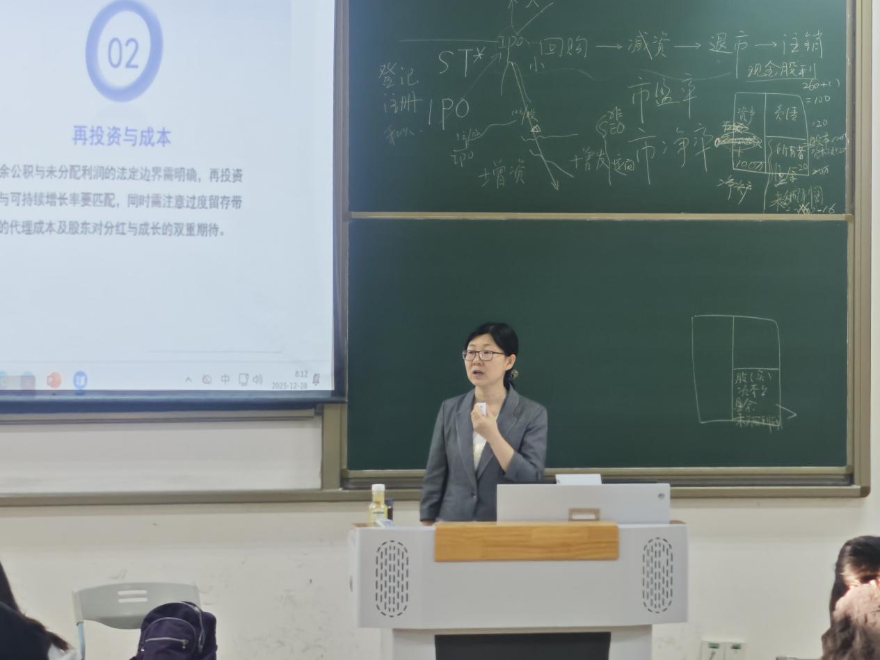 2025年12月27日至28日,书新五号楼东401教室座无虚席、氛围热烈,山东财经大学会计学院田彩英教授受邀带来“财务管理实务前沿”专题课程。作为拥有美国托莱多大学访问学者经历的资深专家,田彩英教授身兼山东省会计咨询专家、山东省会计高端人才(学术类)等多重身份,深耕财务管理领域多年,深厚的学术造诣与丰富的实务经验让这场跨海而来的课程备受学子追捧。