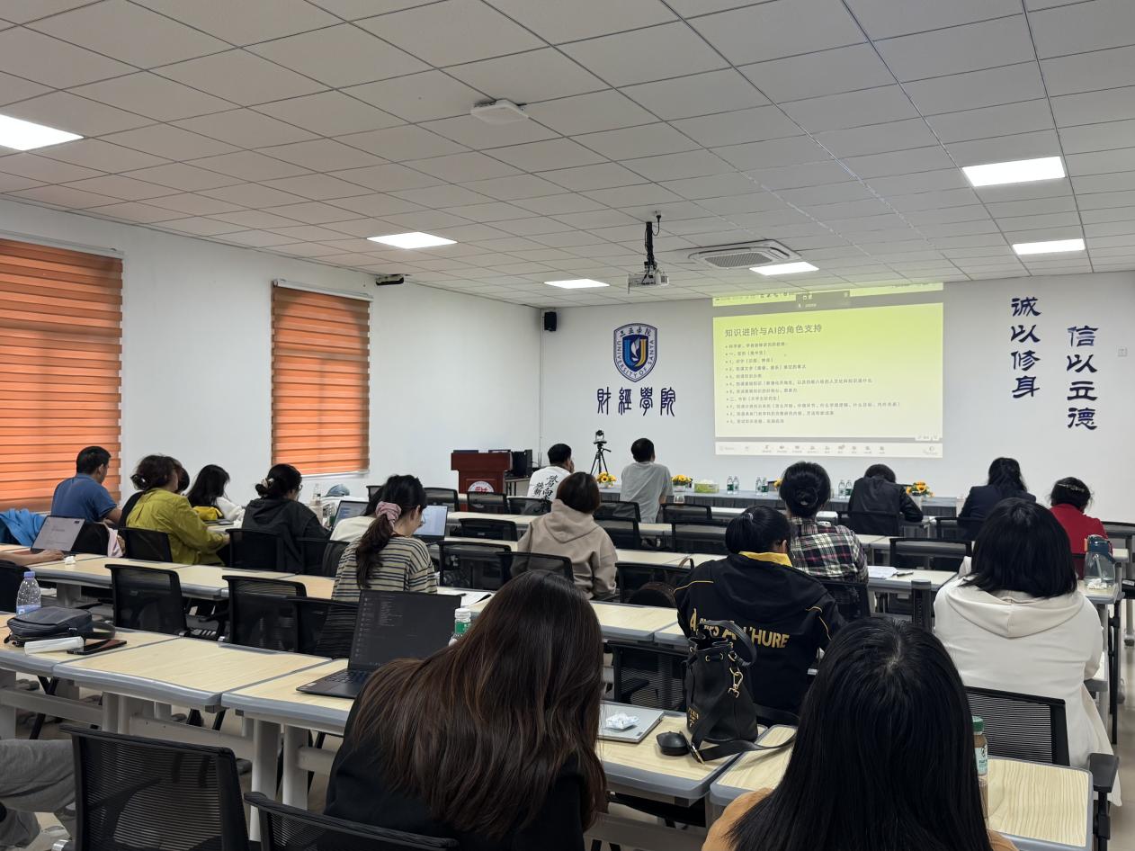在下午的总结环节,陆丹博士结合“知识进阶与AI的角色支持”主题,进一步深化了对AI赋能教育的阐释。他指出,AI在不同阶段的知识进阶中扮演着差异化角色:在基础教育阶段可辅助教师完成基础教学任务,在高阶研究阶段则能替代大量重复性工作,让师生将精力聚焦于知识创新与核心问题解决。他特别强调,AI教学应与经济场景、市场逻辑深度融合,形成有竞争力的解决方案,这为财经学院探索智能体在金融、会计等专业场景中的应用提供了理论支撑。