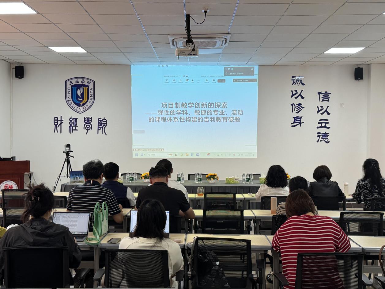 本次交流会分为上午、下午两个阶段。上午场聚焦“项目制教学改革”,来自吉利人才发展集团各院校的八位老师依次分享实践经验,从项目管理闭环构建、教学目标与产业需求平衡,到课程体系适配场景需求等多个维度展开深度交流。老师们结合所在院校的典型案例,剖析了项目制教学在学科融合、能力导向培养中的关键作用,也引发了财经学院教师对“如何将项目制融入财会类课程”的思考。