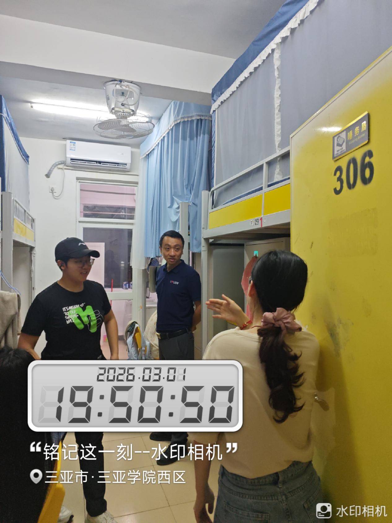 走访过程中,曹瑞吉副书记与思想导师深入学生宿舍,从安全、卫生、思想动态三个维度开展细致检查。在安全排查环节,重点查看了宿舍内是否存在违规大功率电器、私拉乱接电线等问题,仔细检查插线板摆放是否规范、是否超负荷使用,同时提醒学生远离“三无”电器,牢记“人离断电、关水关窗”的安全准则。针对部分宿舍存在的物品堆放杂乱、垃圾未及时清理等情况,思想导师现场指导学生整理内务,引导大家养成整洁有序的生活习惯,共同营造舒适的住宿环境。