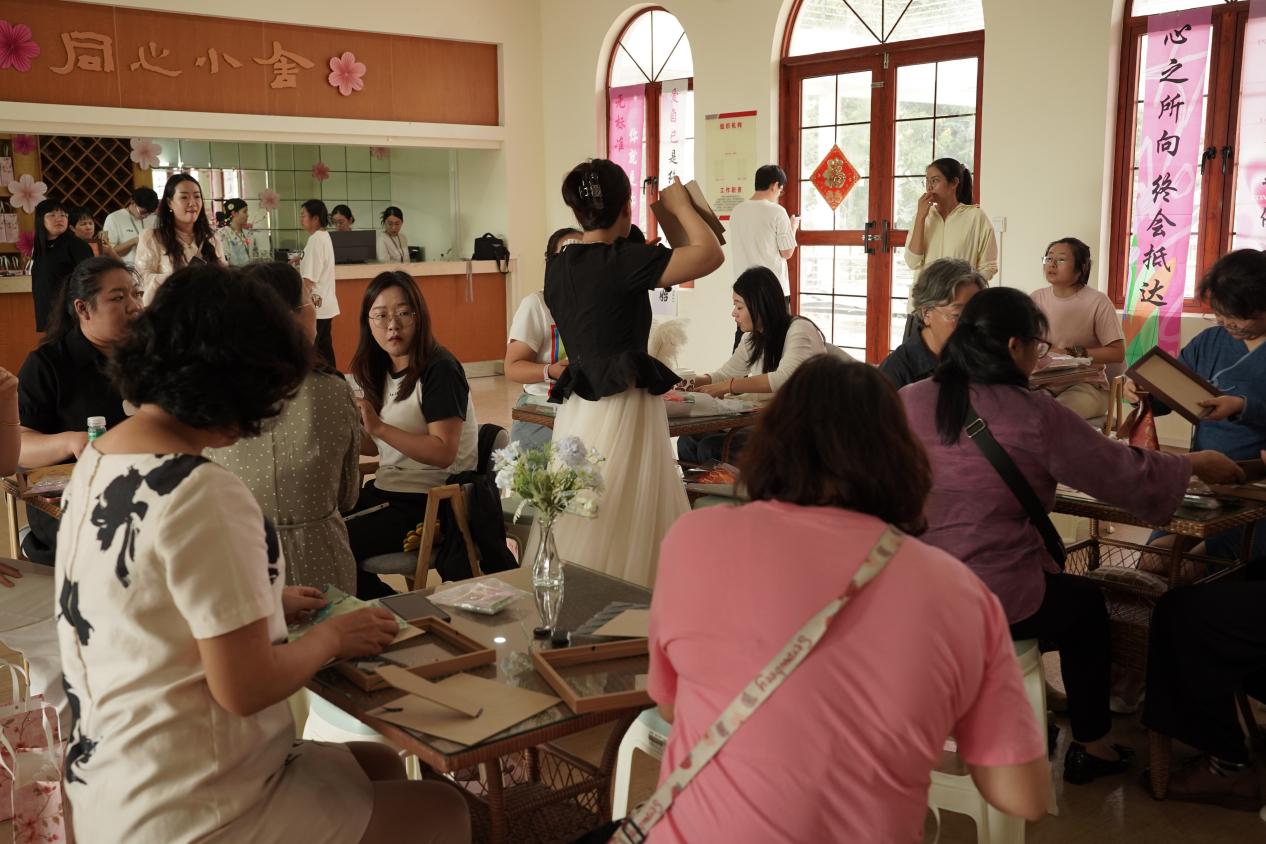 鲜花传递寄托关怀,甜品分享品味甜蜜,手工创作定格美好,互动畅谈凝聚心声。整场活动将暖心关怀与趣味体验完美融合,让每一位参与者都沉浸在温暖与喜悦之中。大家手持自己亲手制作的宋锦珍珠画作品,收获了满满的成就感与幸福感,在动手创作的过程中舒缓了工作压力,增进了彼此之间的情谊。