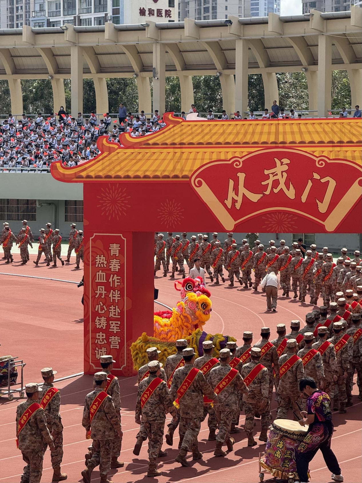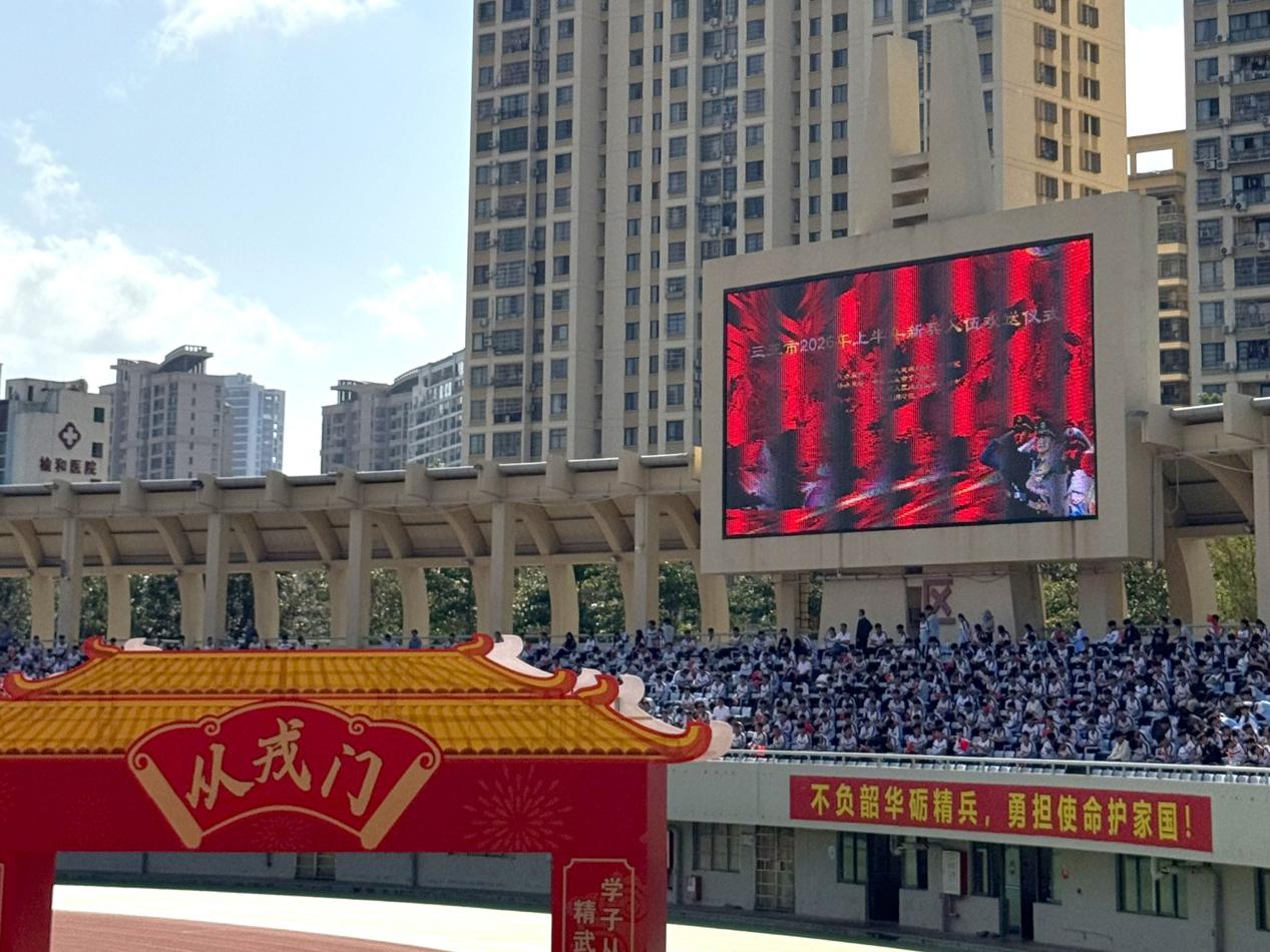 3月17日,三亚市2026年上半年新兵入伍欢送仪式在三亚技师学院隆重举行,来自全市的优秀青年身着戎装、胸佩红花,肩负保家卫国的使命,即将奔赴祖国各地开启军旅征程。财经学院会计学专业2026届毕业生、会计2203班祝育林、陈静凡两位同学经过层层严格选拔,成功应征入伍,思想导师鞠岳坤老师前往仪式现场,为两位学子送上母校的殷切祝福与深情嘱托。